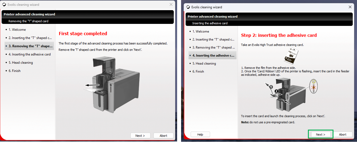 Clients must run advanced cleaning every 5 regular cleaning to ensure the Evolis Primacy is dust-free and prints quality ID Cards.