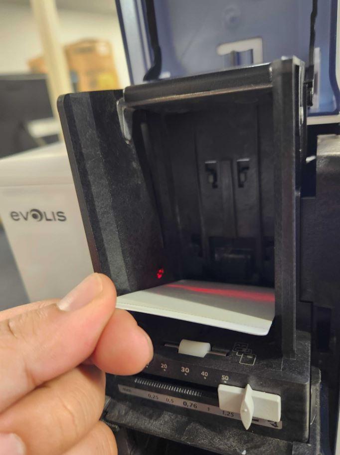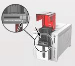10. Re-insert the ribbon, re-place the cards, and set the Card Thickness Gauge back to 35 mil