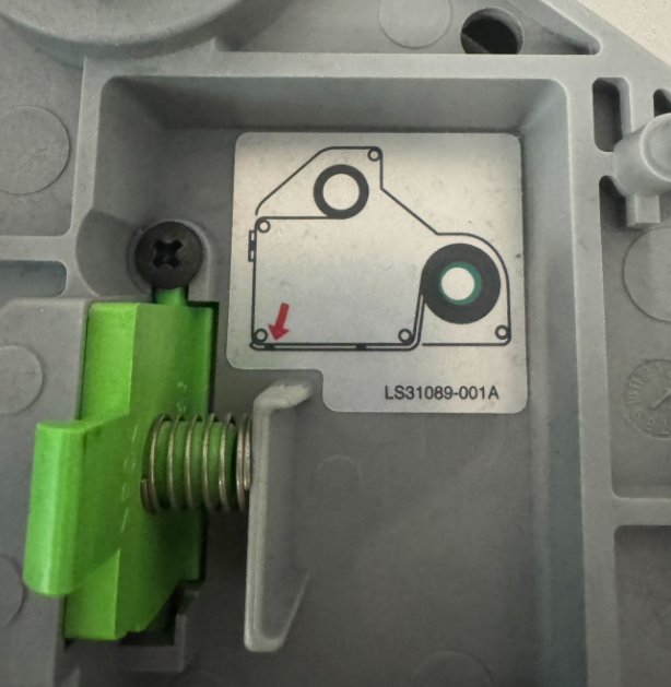 2. Examine and follow the direction of the ribbon based on the sticker guide