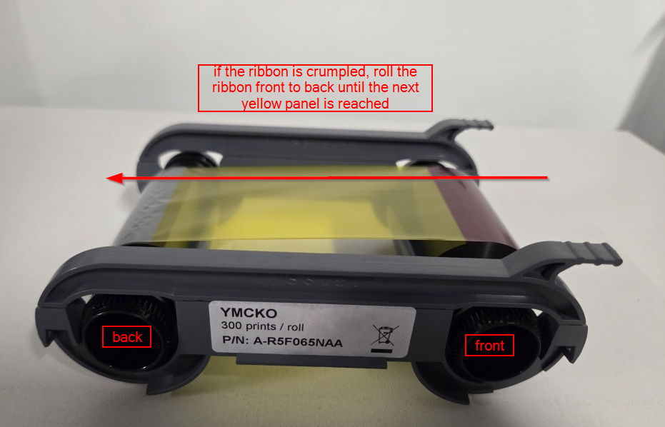 2a. If the panel is crumpled, roll the ribbon back to the next uncrumpled yellow panel