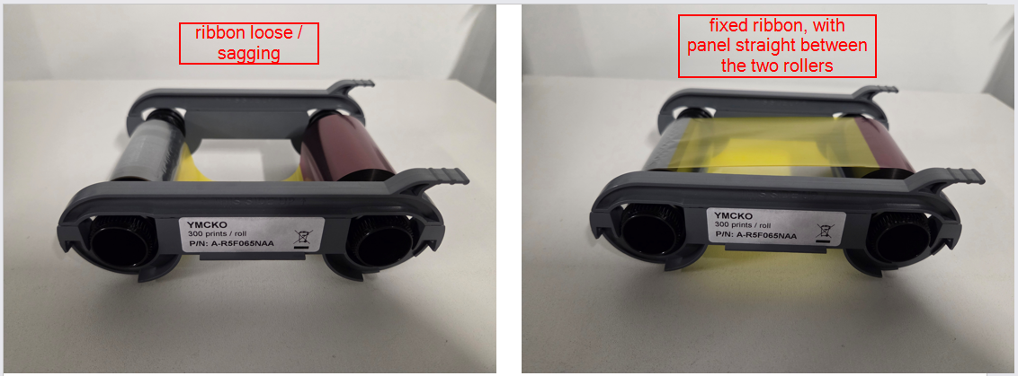 2. Straighten out the ribbon (right), ensure the panel is not crumpled