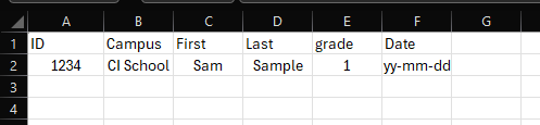Example formatting of CSV ID and Campus are required
