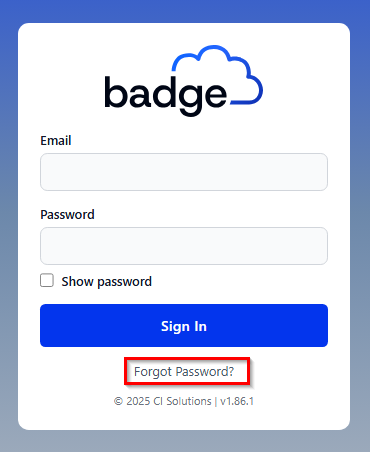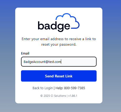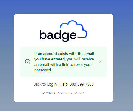 - Check your email including spam folders from Badge and CI Solutions. Allow up to ten minutes to receive the email.