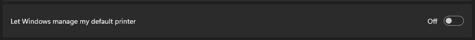 2. On the bottom of the page, uncheck the box that says Let Windows manage my default printer