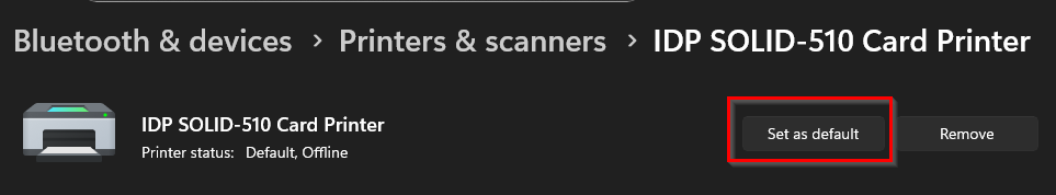 In Windows and MacOS, clients can set the card printer as default to skip the client's browser from asking to set printer before printing cards. By setting the printer to default and skipping a step, clients are able to quickly print ID cards.- The card printer must be set as your computer's default printer when using ID Print.