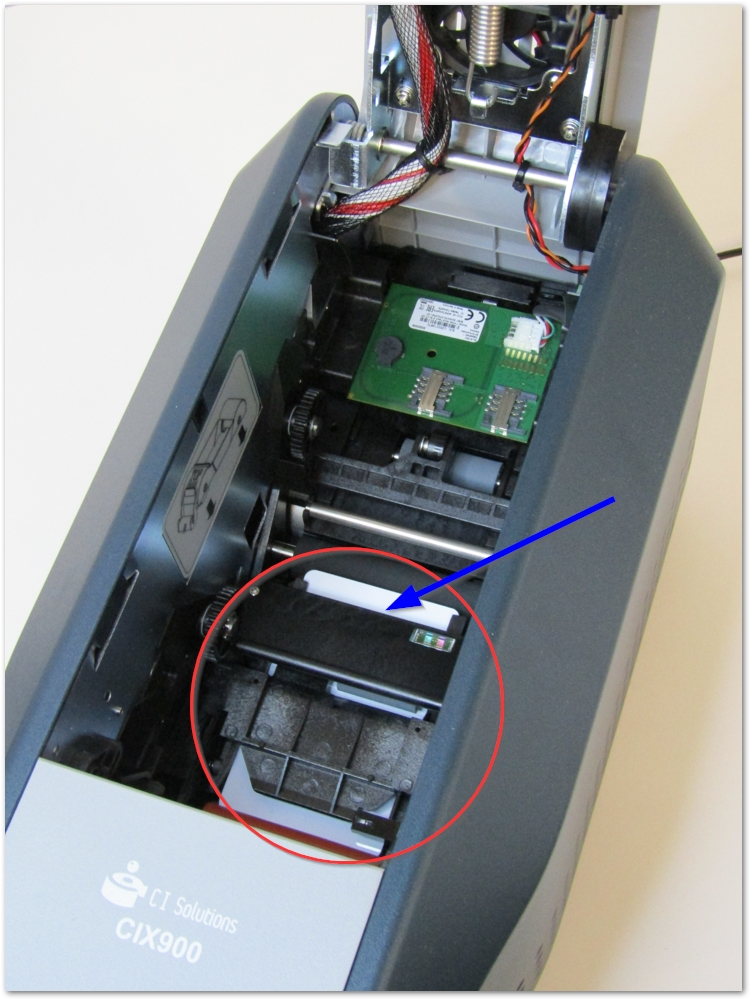 3. Ensure no cards are stuck inside the printer. If there is, locate the card and press the Left LED button to move the card towards the rear outlet