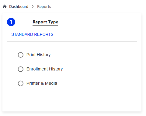 2. Select the reporting type (i.e., Print History, Enrollment History)