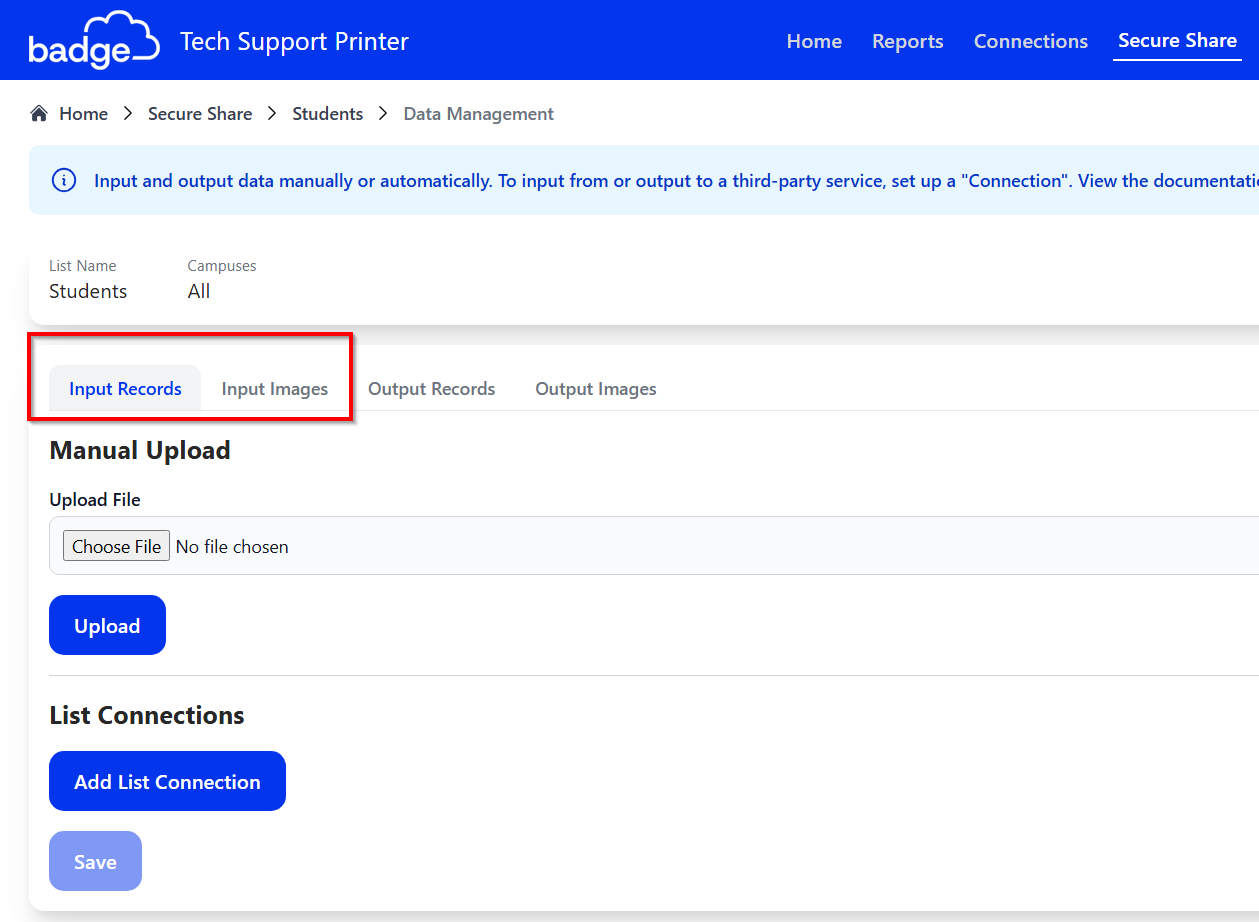 4. Select the choice of import (e.g., INPUT RECORDS, INPUT IMAGES)