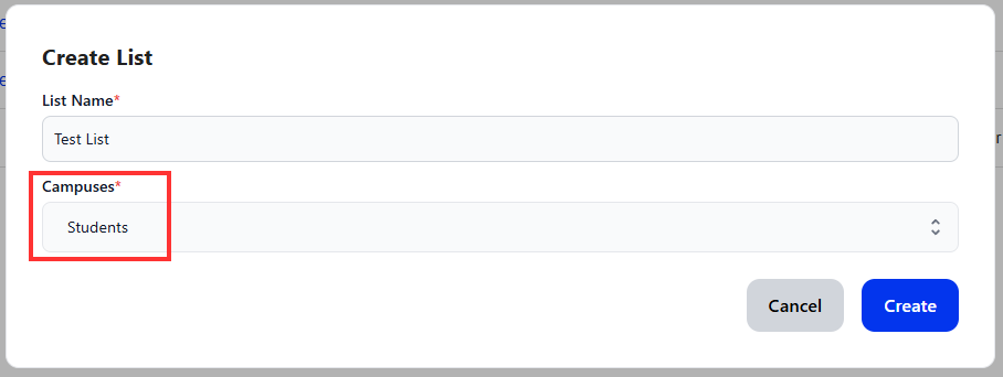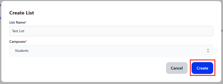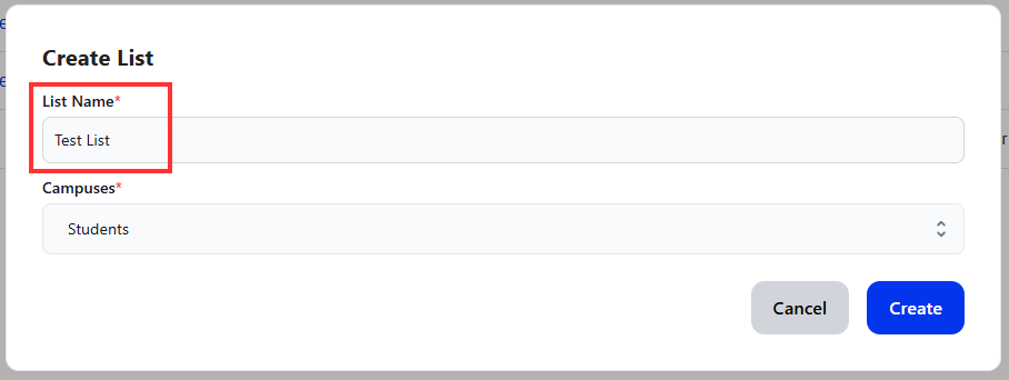 3. Enter a List Name (e.g., Students, Staff, Associates)