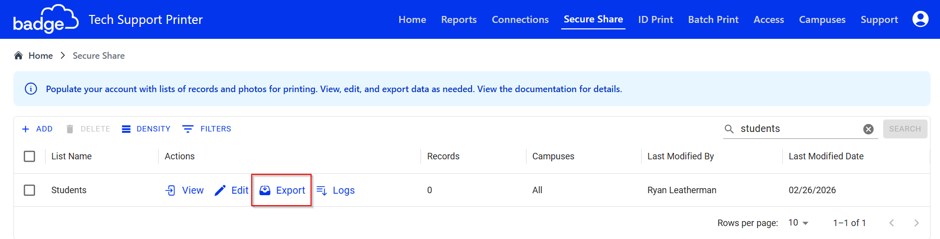 You must have access to Secure Share to manually import data into Badge.Export Data