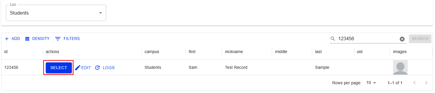 4. Search the record you want to print > Click Select