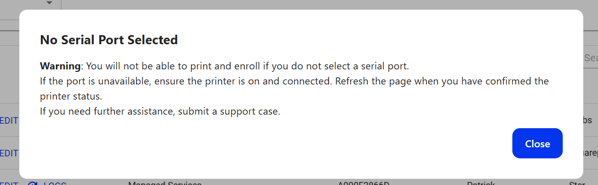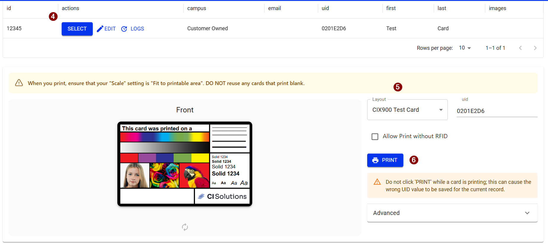 - You will see the UID column populate a new RFID value after the card prints and a green successful enrollment message appears on the bottom left corner of the page.