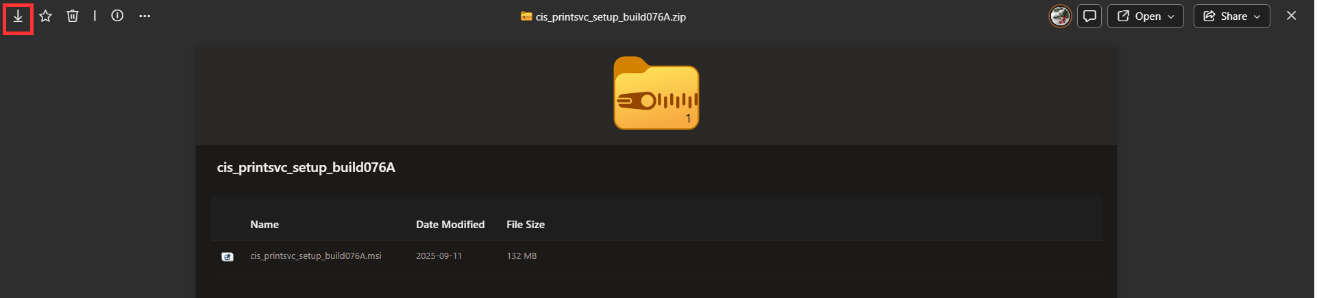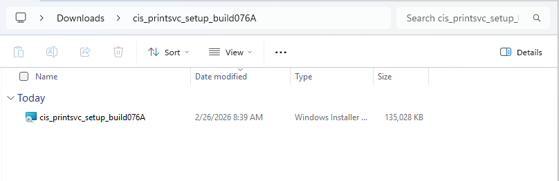 4. Go into the extracted folder and double-click cis_printsvc_setup_build076A